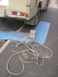 The ambulance originally had a mains hookup for a battery charger & block heater, however the both had long since gone and the hookup box on the rear outrigger was crusty as anything. This also meant there was quite a lot of extra cabling knocking round underneath making the place untidy, so for now we've removed it all: