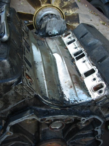 Having the 4.6 block, I'd sold the old 3.9 to a mate but then realised I needed a front cover, sump, and all that jazz to build the 4.6 up… so I bought a shagged out 3.5 lump from RR Parts for cheap and had all the ancillaries off it.