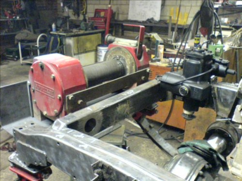 Anyway, a front crossmember was fabbed up from 100×50 box section and welded in to accommodate the winch's drive spigot.