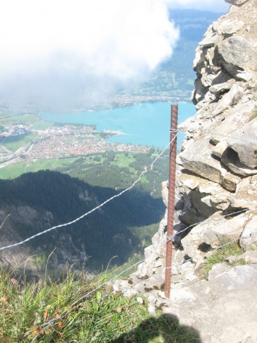 The Swiss take health & safety seriously - garden wire and bailer twine to secure this cliff edge. Interlaken is just a brief plummet to your doom below.