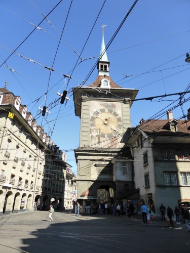 Bern is very pretty and has an awesome clock. Every hour, on the hour, hordes of tourists stand in the middle of the road & tram way to watch it do its thing. I don't know how many survive.