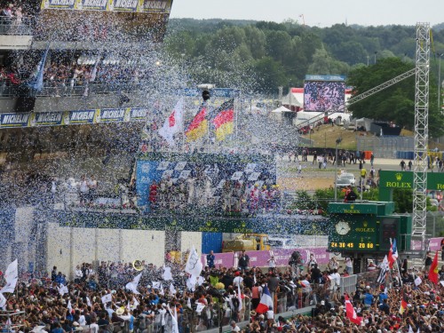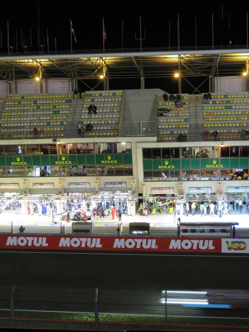 You can spectate from loads of places round the track, but you need a ticket to reserve a seat in a grandstand. As all sorts can happen in 24 hours, it's worth having a seat and it's worth the extra for that seat to be under cover. We splashed out on seats in the ACO grandstand. Being the race organisers, the ACO stand is about the best ticket in the house and we were right opposite the pit lane, within view of a jumbo TV and the start/finish line & podium. The ACO stand has its own bar, cafe, and toilets so it's about the best sorted you can be.