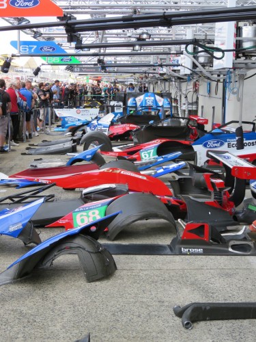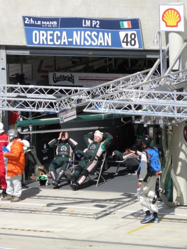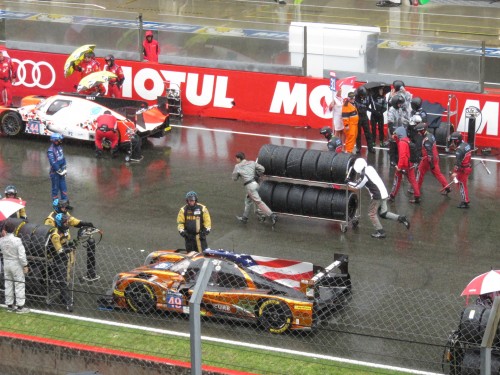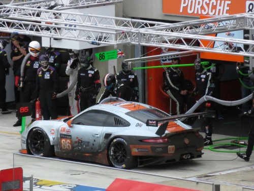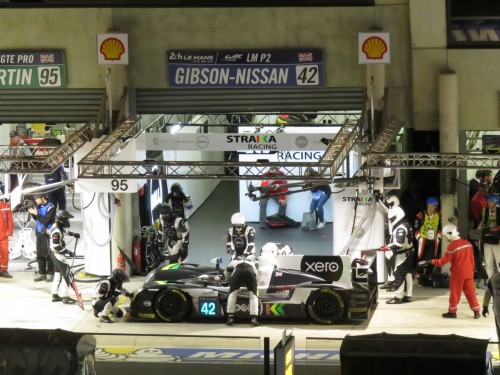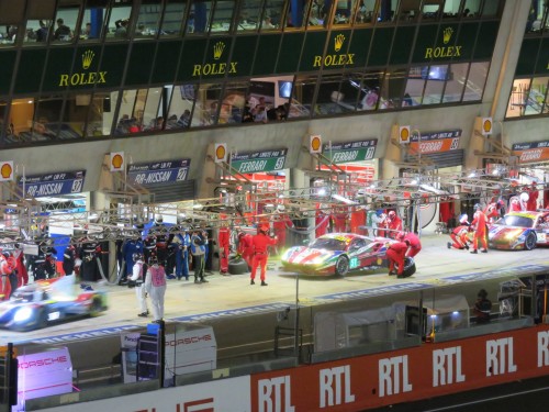 With 60 cars racing and a tank of fuel lasting maybe an hour, the pits are never empty - they regularly have to parallel park when the pits either side are busy.