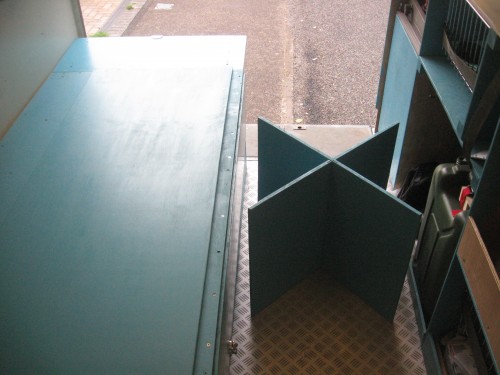 It's especially a bit of a faff when you stumble in late from the pub and just want to get into bed. Perching in the small gap near the back door, with your bum against the cold chrome door handle, trying not to drop a large wooden box on your toes gets old fairly quickly!