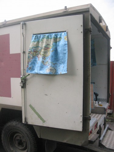 Helen got busy with the sewing machine & some material from eBay, plus “blackout” lining material. These are for the windows in the back: