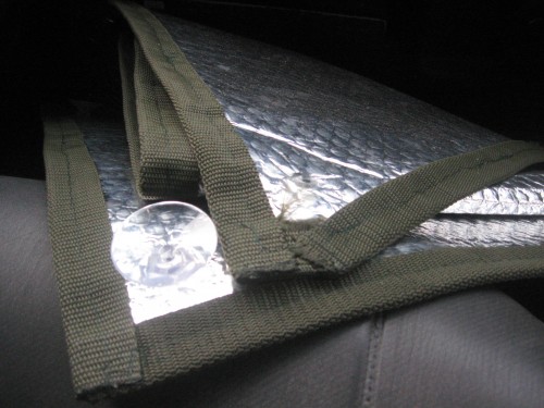 And some thermal blinds for the cab windows - B&Q value tin-foil backed bubble wrap loft insulation (£15/roll), a roll of 2“ NATO green nylon webbing from eBay and a dozen or so window suckers. Took some heavy duty sewing but came out a treat, they're hundreds of quid to get custom made!