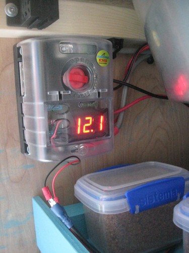 eBay £1.99 Chinese panel volt meter sits nicely in the fusebox lid - we disconnected it at night because of the glow: fuddymuckers.co.uk_gallery_s_500_127_img_3146.jpg