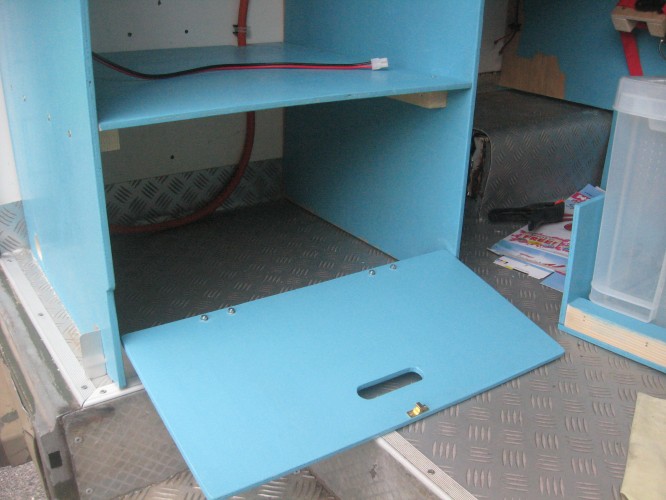Beer cupboard created for easy access and to stop things rolling around: