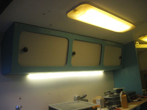 Offcut of LED strip provides under-cabinet lighting for the win.