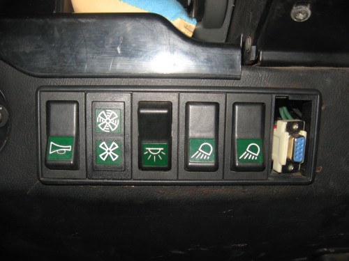 I then filled one gap with an indicator insert that shows the status of the engine cooling fans, and re-purposed the siren switch (horn icon) to turn on the USB charging sockets fitted in the dash, they have an annoying blue LED (my pet hate) and putting them on a switch means they can be switched on when parked if needed rather than being on the ignition live. The final slot currently has the serial cable for the Megasquirt ECU poking through, when I get a moment I'll make a proper insert to tidy it up.