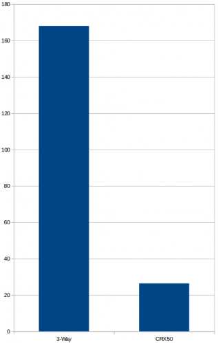 Here's the 3-way running on 12v Vs the CRX50 running on 12v, as you can see, there's a fair difference!