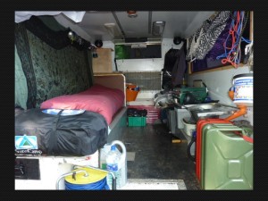 So then we had a proper think, did some measuring up, googled to see what other (non-hippies) had done conversion-wise, and thanks to a mate (Chip) with a very similar 130 ambulance/camper we had a drive round and a poke about in his one to see if it felt liveable with.
