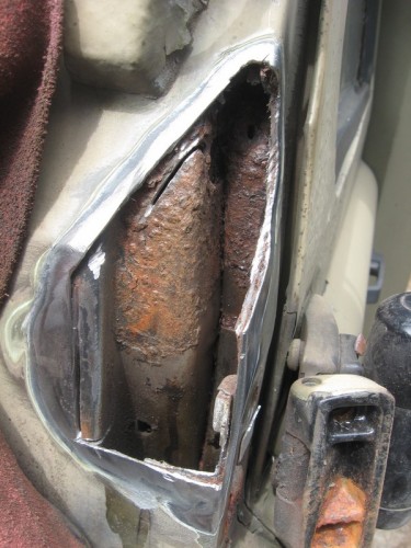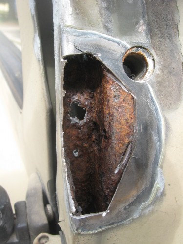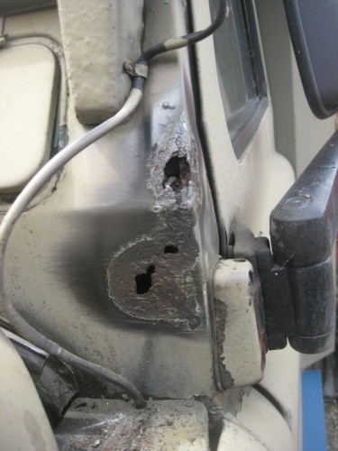 - Passenger door has been broken into at some point, and the frame is rusty, but it works.