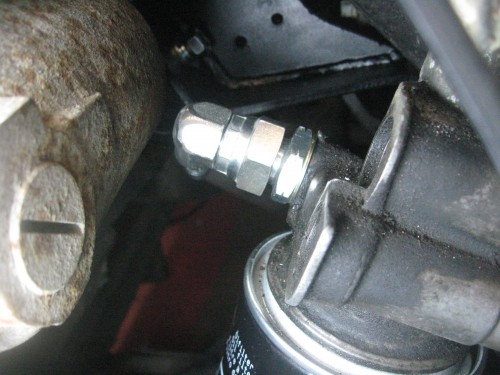 On both V8 conversions I had been unable to find any info at the time on the exact plumbing of the oil system, so I'd looped short lengths of hydraulic pipe where the oil cooler should be. However, it was never very neat and it's an extra potential point of failure, so eventually I did a lot of poking around with a scrap front cover, asked on LR4x4 and replaced the pipes with blanking plugs - M20 thread if you need to know: