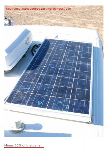 Something not commonly mentioned is that ANY shadows (or dirt, leaves, etc.) on solar panels pretty much kill their output, for example this picture (from HandyBobSolar shows a small shadow reducing a panel to -50% output: