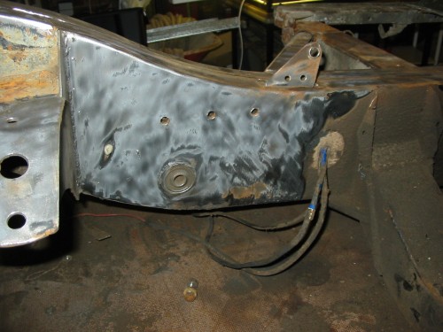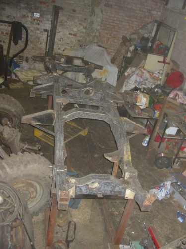 I was sent out to buy myself a couple of angle grinders and a load of wire wheels, and then told to set to and strip the chassis back to bare shiny metal. For context, the chassis was 30 years old ex-military so had pretty much been dipped in bitumen at the factory and then allowed to accumulate 30 years of grot over the top, with occasional re-coatings of god-knows-what by bored squaddies in the intervening years.