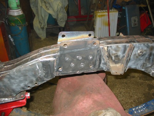You can see where the front crossmember was removed and a temporary bar was welded across the front of the chassis to hold it - weld the support bar before cutting the old bits out!