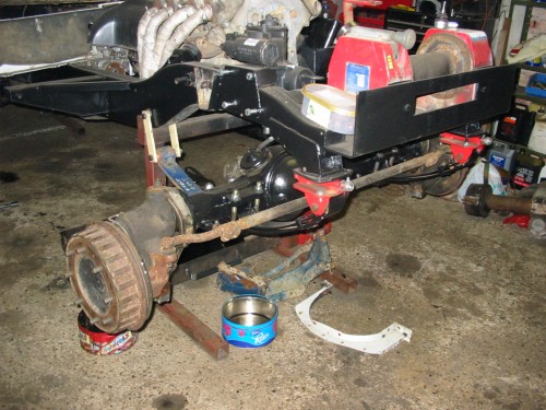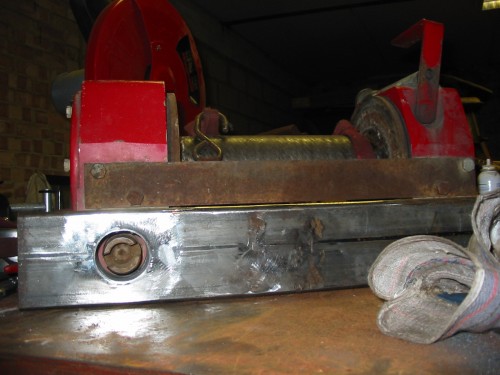 Anyway, a front crossmember was fabbed up from 100×50 box section and welded in to accommodate the winch's drive spigot.