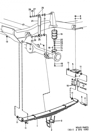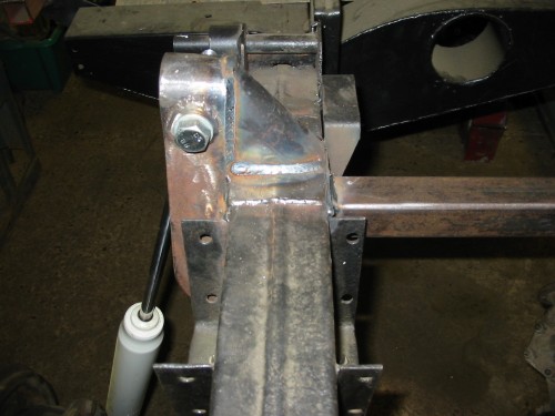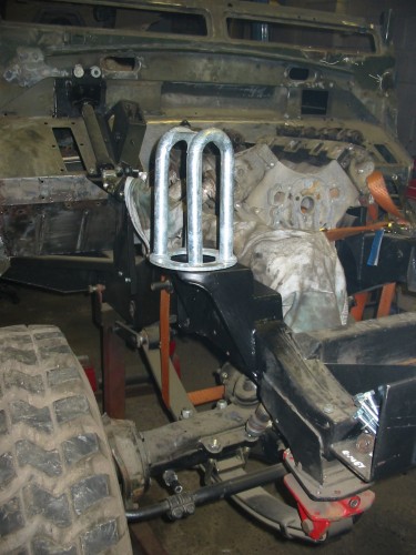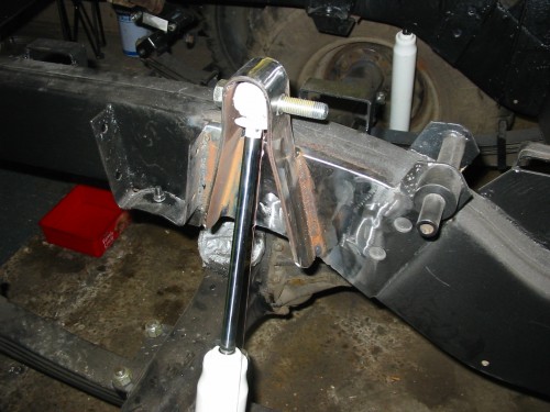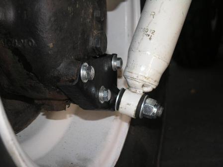 However, the Volvo shock mounts are both strong and fairly well placed. The front one is very solidly welded into the axle tube and the rear one bolts to the bottom of the portal box, which gives a huge amount of available shock travel.