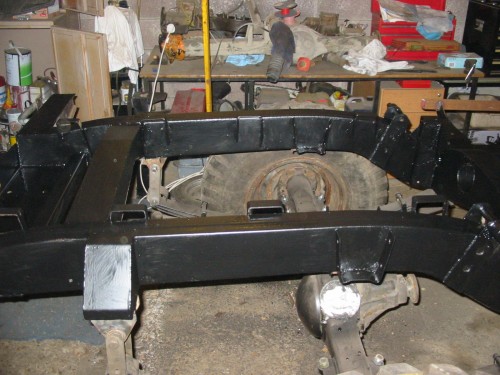 Another 50×50 crossmember was welded in bracing between the rear spring hangers - this is more crossmembers than you might really need but it's not exactly a huge extra burden, and it gives somewhere for the fuel tank to hang!