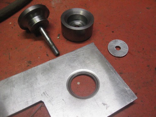 Home-made dimple-die and hole punch in one - for a straight punch don't put the flared bit in!