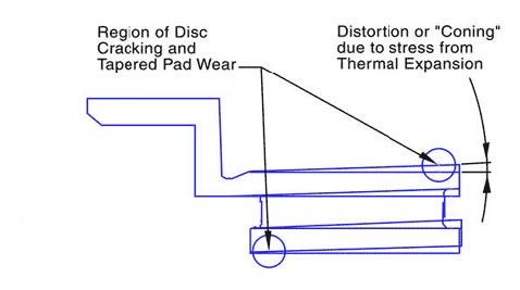 When disc brakes for high performance cars arrived on the scene we began to hear of “warped brake discs” on road going cars, with the same analyses and diagnoses. Typically, the discs are resurfaced to cure the problem and, equally typically, after a relatively short time the roughness or vibration comes back. Brake roughness has caused a significant number of cars to be bought back by their manufacturers under the “lemon laws”. This has been going on for decades now - and, like most things that we have cast in stone, the diagnoses are wrong.